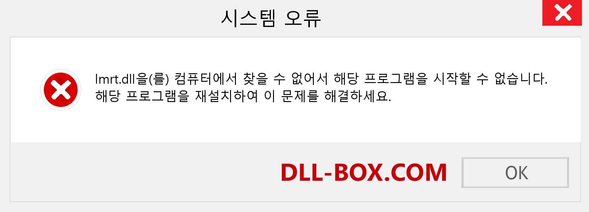 2. 시작하는 동안 문제가 발생했습니다. lmrt.dll 지정된 모듈을 찾을 수 없습니다.